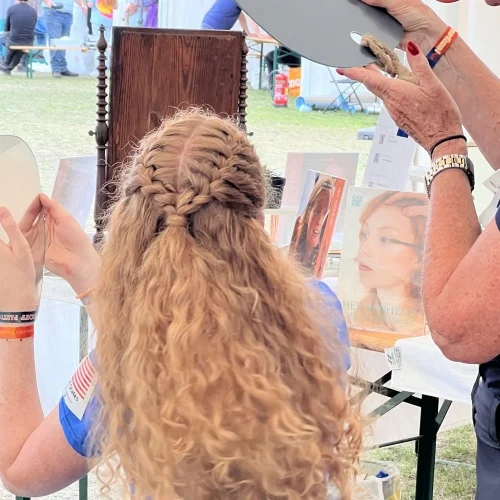 Ob Sie sich eine einfache Flechtfrisur oder ein wahres Kunstwerk in Ihrem Haar wünschen, Sie sind in unserem Schönheitszelt herzlich willkommen!