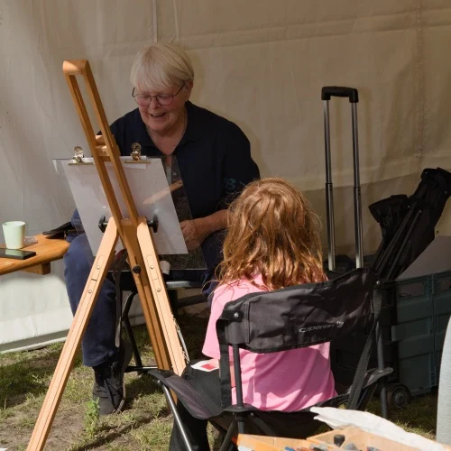 Lust auf ein einzigartiges Festival-Souvenir? Treffen Sie unsere Porträtkünstler! Auf dem gesamten Festivalgelände finden Sie talentierte Porträtkünstler und Maler, die Sie so festhalten, wie Sie sind – im jeweiligen Moment. Mit schnellen Skizzen oder raffinierten Gemälden fangen sie Charakter, Atmosphäre und Emotionen ein. Ob Sie allein, mit Freunden oder mit Ihren Liebsten kommen: Ein Porträt ist eine bleibende Erinnerung an einen besonderen Tag. Besuchen Sie uns, lassen Sie sich vom kreativen Prozess verzaubern und nehmen Sie ein persönliches Kunstwerk mit nach Hause. Kunst, Begegnung und Festivalzauber vereinen sich hier.