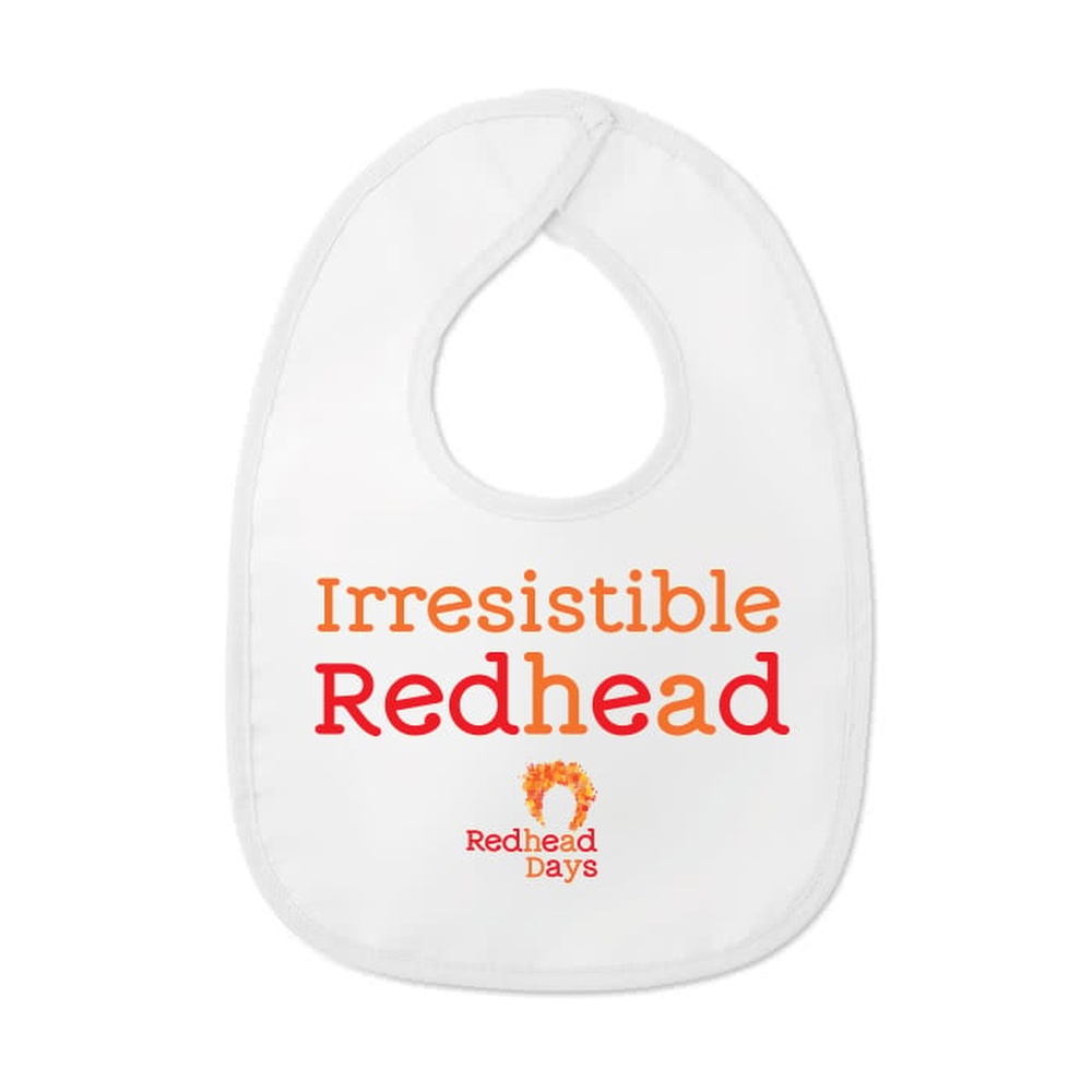 Slabbetje met quote “Irresistible Redhead” en RHD logo